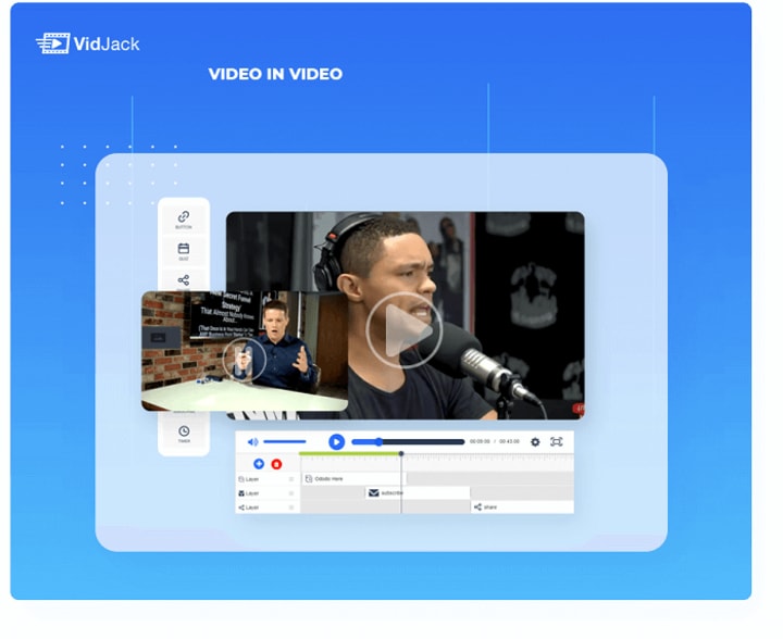 VidJack is the world’s most robust drag and drop interactive video creator. Inside this product, you can easily add unlimited interactive elements, add Ctas, build your list, sell & receive payments right inside any YouTube or Vimeo video.
