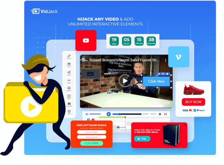 There is a brand-new software that allows you to add unlimited interactive elements inside any (even trending…) YouTube or Vimeo video to drive massive traffic, conversions and sales for your own business and for your clients. It is called VidJack.