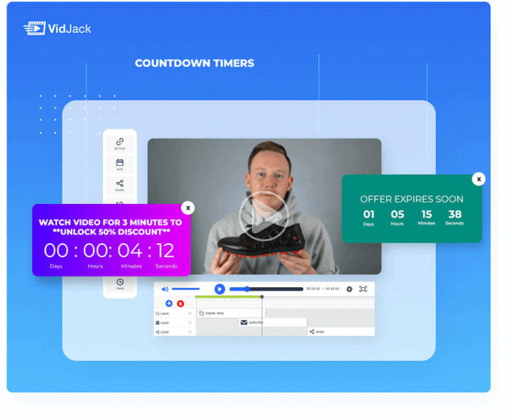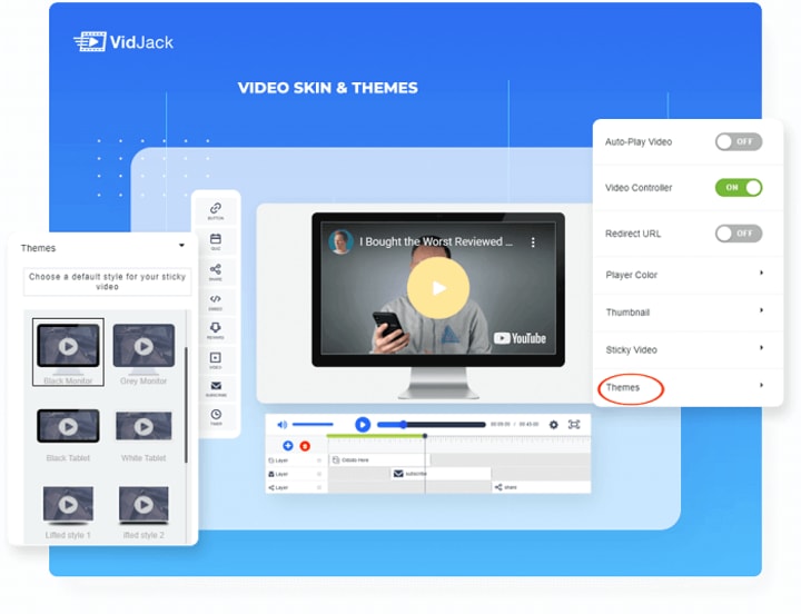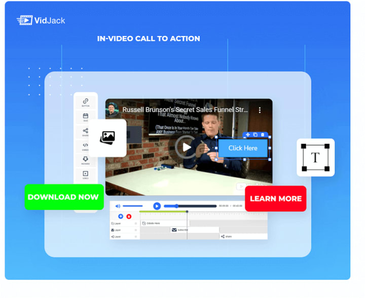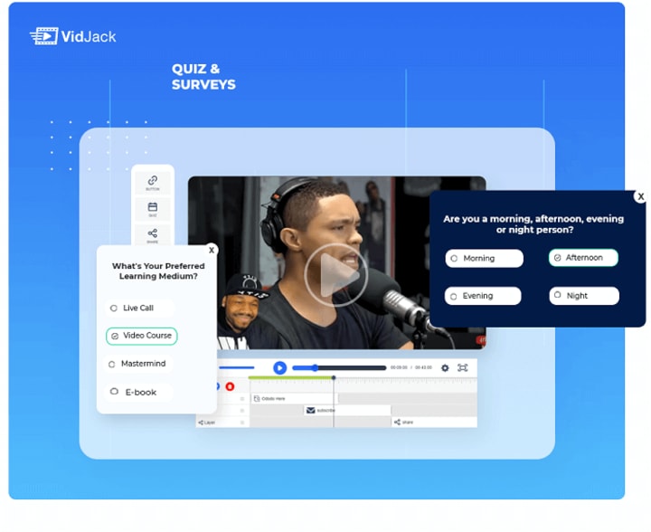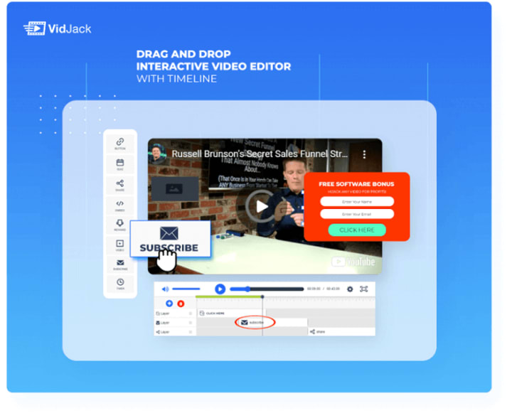 VidJack is the world’s most robust drag and drop interactive video creator. Inside this product, you can easily add unlimited interactive elements, add Ctas, build your list, sell & receive payments right inside any YouTube or Vimeo video.