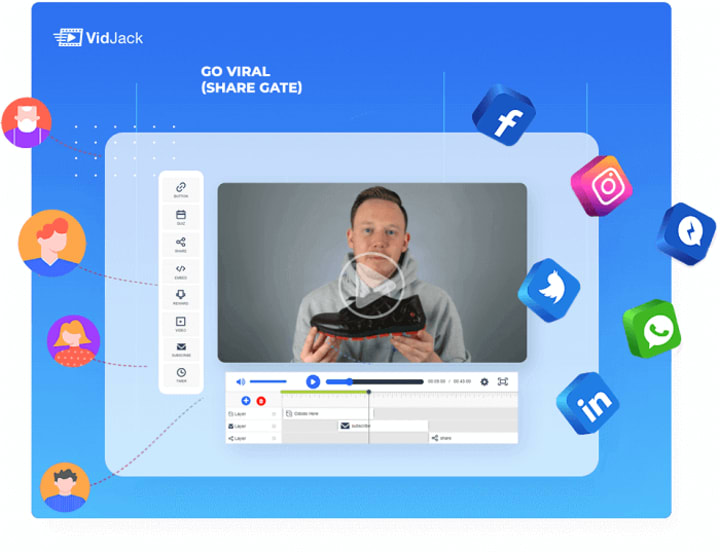 Publish your VidJack interactive video to any website, sales or squeeze page, blog, eCom store and more. Direct link to social profiles, pages & groups.