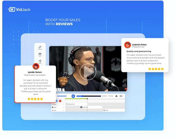 Embed customer testimonials & reviews to boost credibility, trust and sales. All you need to do is activate this on your videos and watch social proof to boost your conversion rate.