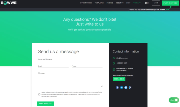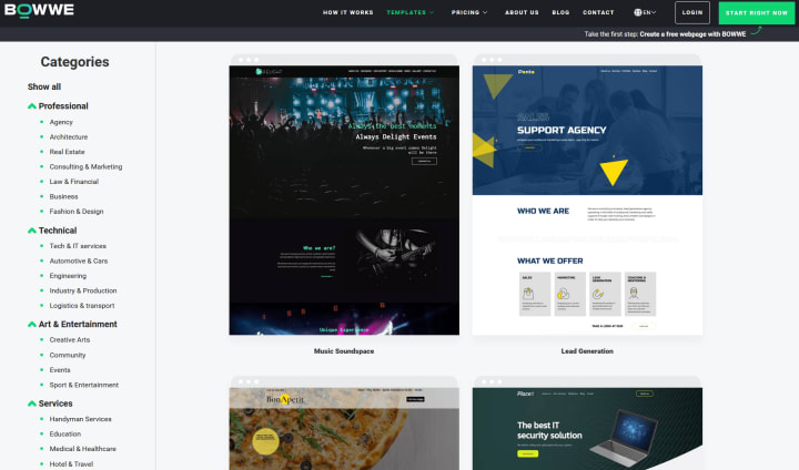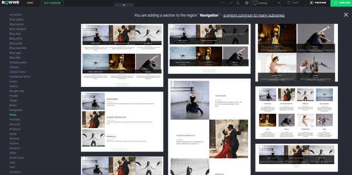 Templates: BOWWE offers over 50 original templates for the websites alone. The offer also includes templates for a landing page, micro page, or portfolio.