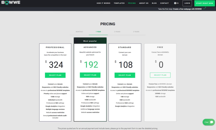 Plans: The prices are very attractive compared to the prices offered by the competition. It is also possible to set up a free website on the BOWWE domain.