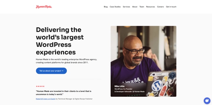 Human Made is another top-tier WordPress development company with a significant US presence (headquartered in New York). They focus on enterprise clients and media companies, delivering scalable and secure WordPress solutions. Human Made’s team is known for applying open-source, collaborative processes – they describe their culture as transparent and community-driven. With over 13 years of experience, they tackle complex projects like large multisite networks and headless CMS architectures.