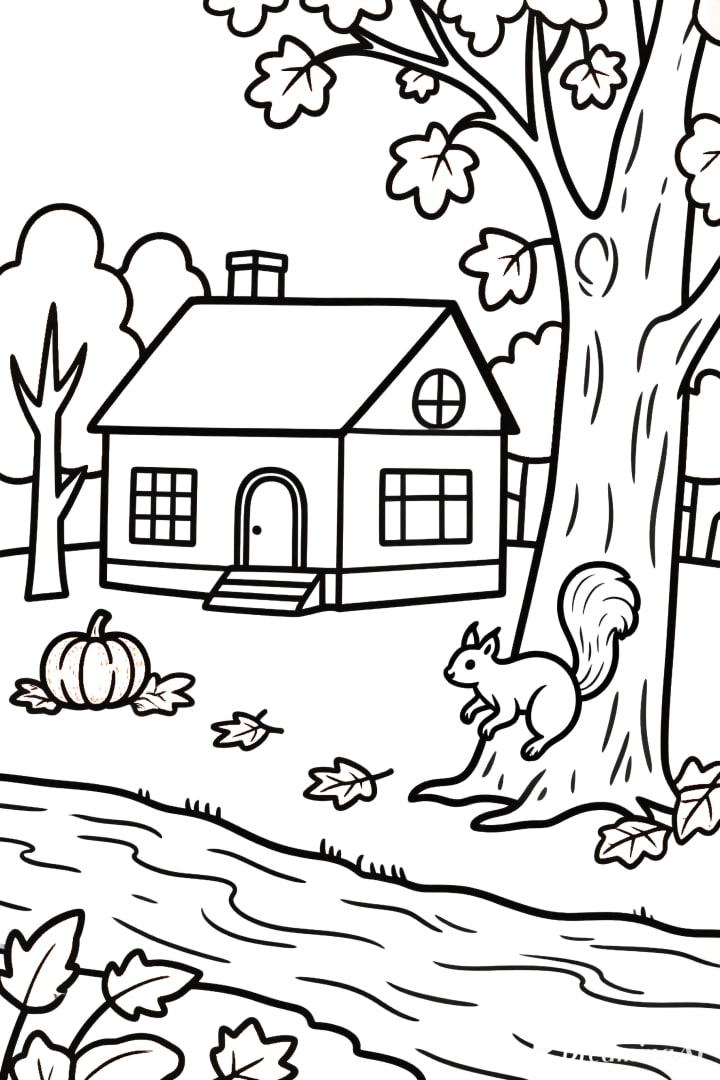 Autumn coloring pages can include so many delightful scenes. Some favorites are: