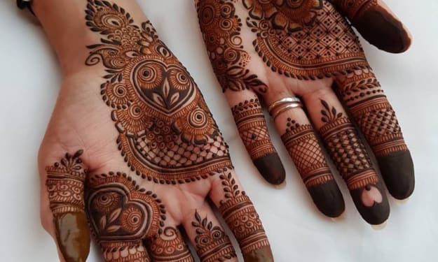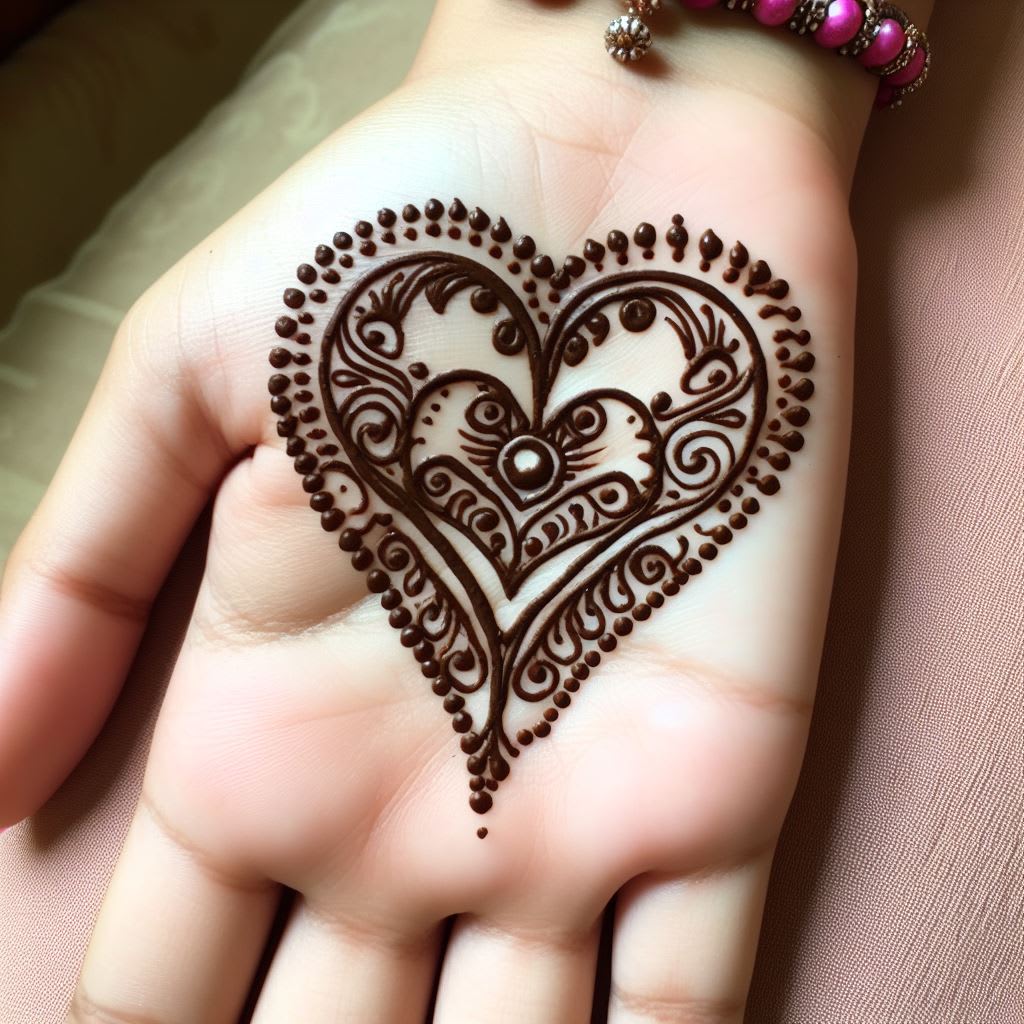 Tip: Add sparkles or glitter to the heart mehndi for extra charm!