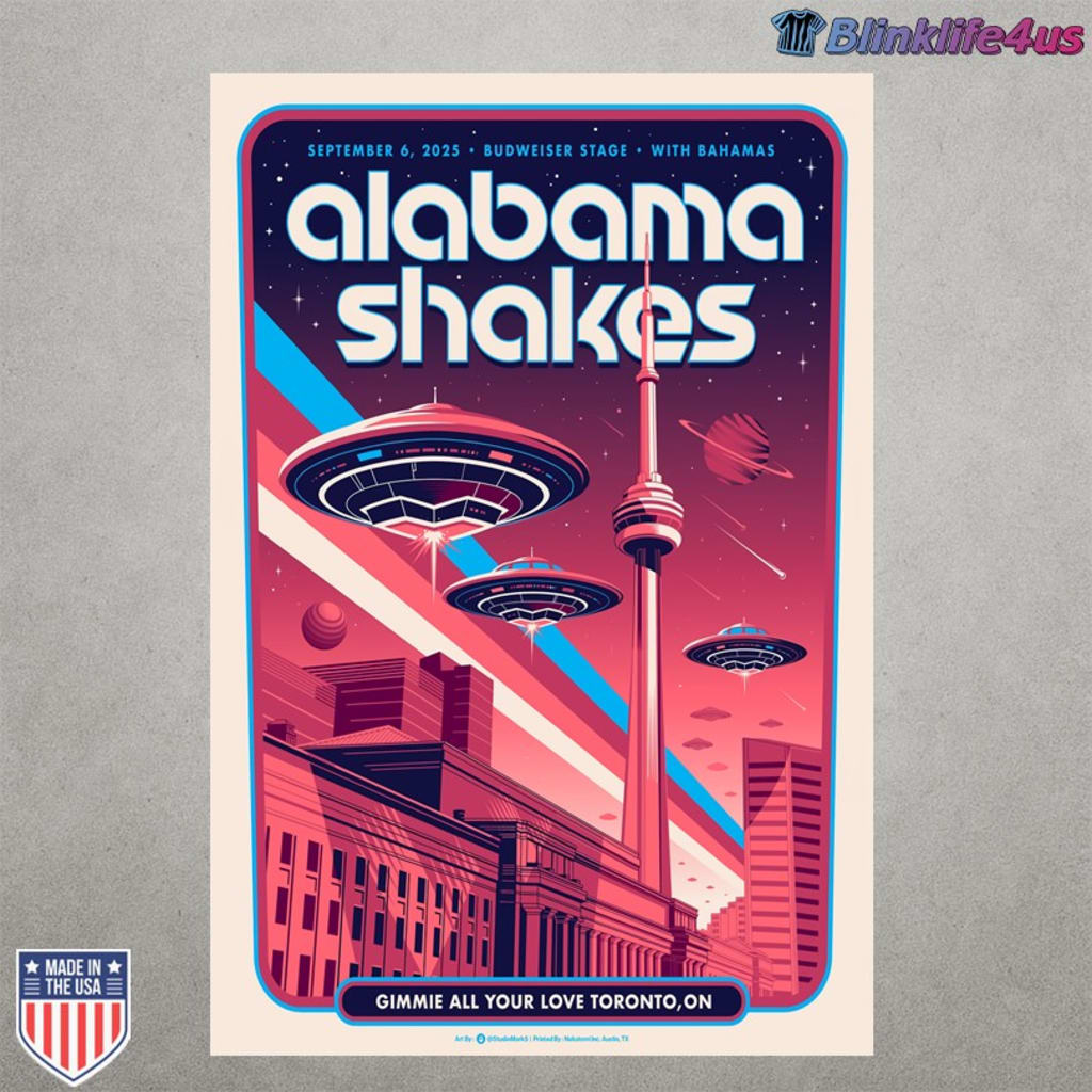 Concert posters are more than event announcements—they are collectible works of art that capture the spirit of a performance. The Alabama Shakes September 6, 2025 Toronto Poster does exactly that. Designed for the band’s show at the Budweiser Stage in Toronto, Ontario, this piece blends futuristic imagery with iconic urban landmarks, creating a bold and imaginative vision that fans and art lovers alike will admire.