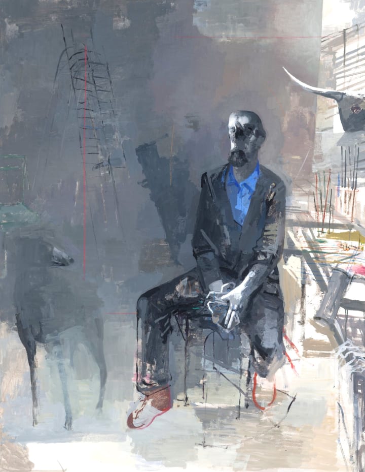 At the heart of Rink’s work is a profound empathy for the human experience. His paintings frequently depict individuals caught in moments of introspection, often juxtaposed against stark, expansive backgrounds that amplify their solitude. These figures are not heroes in the traditional sense; they are vulnerable, complex, and deeply human. Their emotions are rendered visible through Rink’s sensitive brushwork, allowing us to connect with their fears, desires, and uncertainties.