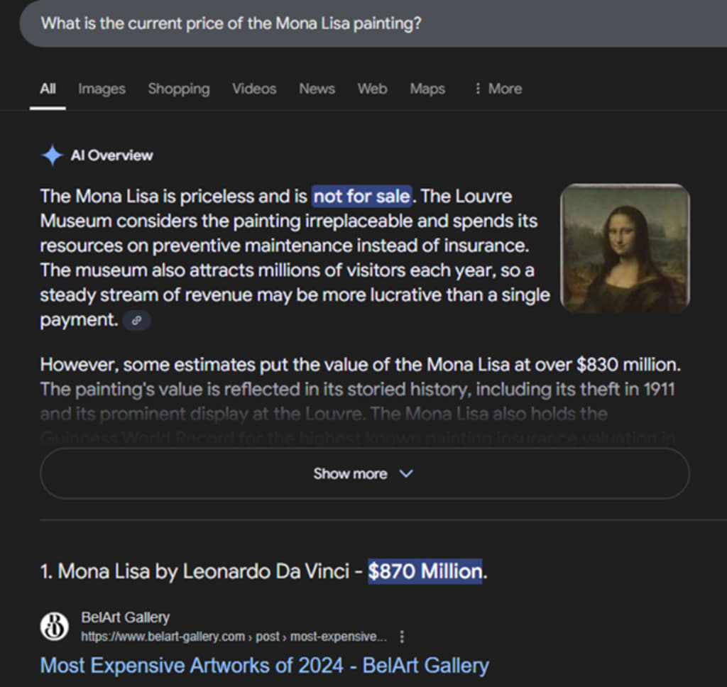 Do you know about artworks such as the painting of the Mona Lisa and Vincent van Gogh's Starry Night? Their prices are quite astonishing. For example, the Mona Lisa has been appraised at around 830 million dollars.