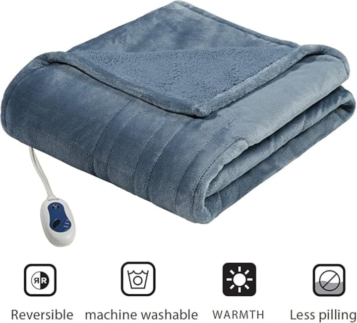 As the chilly seasons approach, finding the perfect blanket to keep you warm and cozy becomes a top priority. If you're in search of a high-quality, multifunctional electric blanket, look no further than the Beautyrest Reversible Microlight to Sherpa Electric Blanket. This luxurious blanket is designed with a host of features that ensure maximum comfort and convenience. From its auto shut off and virtually zero EMF technology to its multi heat settings and UL certification, this blanket has it all. Plus, it's machine washable, making it easy to maintain. Available in a stylish blue oversized throw (60 in x 70 in), the Beautyrest Electric Blanket is the perfect addition to any home.