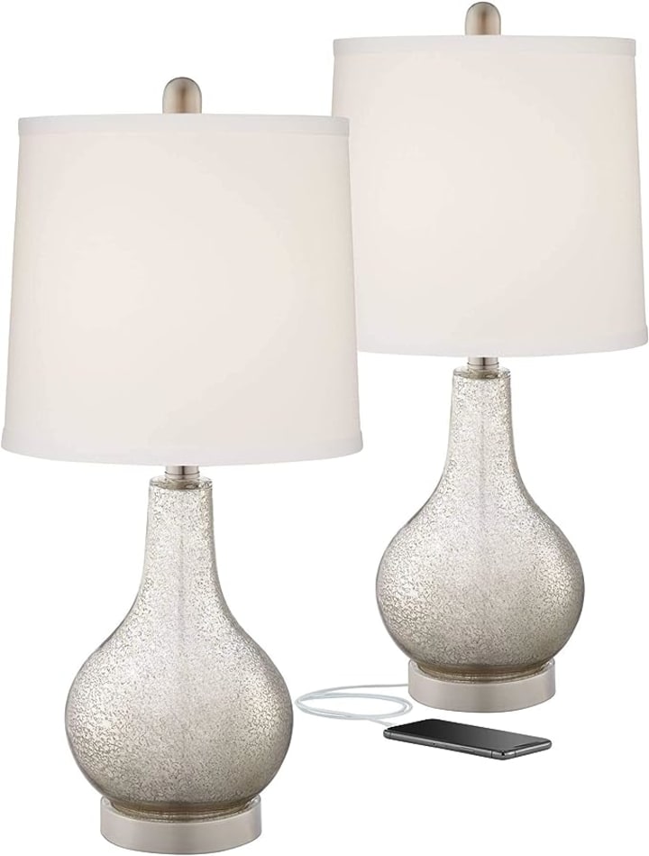 Mercury Glass and Metal Construction: These lamps are crafted with a combination of mercury glass and metal, creating a harmonious blend of materials that exudes sophistication. The brushed nickel finish accents add a touch of refinement to their contemporary design.