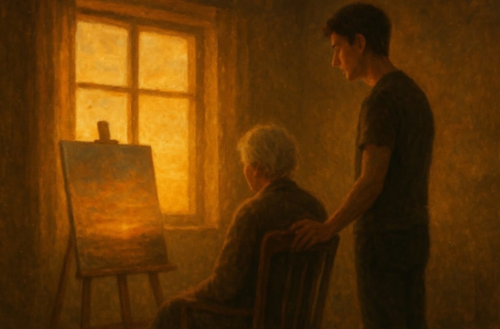 The last week she was here, the sunsets came later — summer fading into autumn. The air smelled like wood smoke and endings. She slept more, spoke less, but she still asked to be by the window every evening.