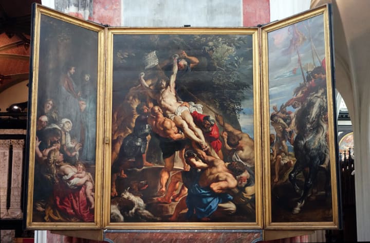 The Elevation of the Cross is an artwork that consists of a huge triptych and a smaller oil-on-paper painting. The artist created this art piece to decorate a church in Antwerp, the Church of St. Walburga. After this, the church was destroyed; the artwork went to the main Cathedral of Antwerp.