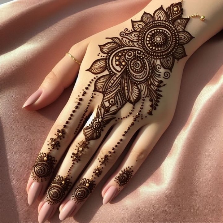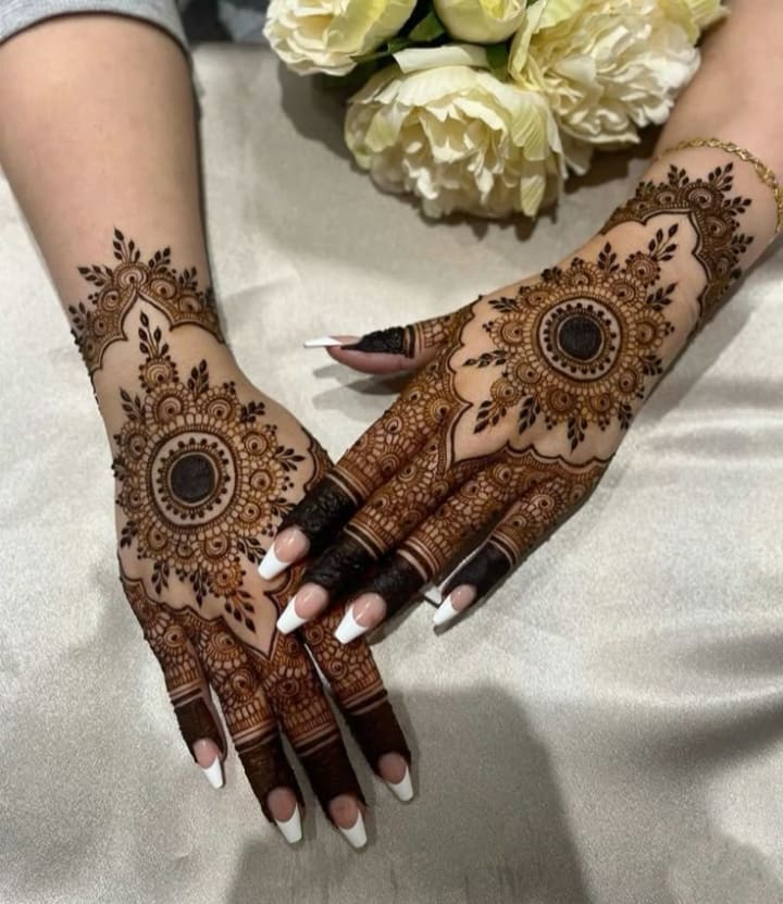 The mandala design is a circular pattern that radiates symmetry and beauty. When applied to the back hand, it looks mesmerizing and traditional while maintaining a modern touch.