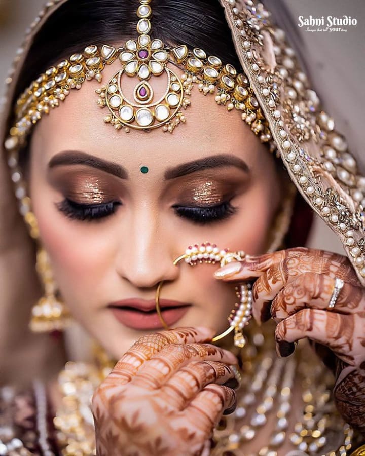 A timeless choice for brides, smokey eyes add drama and intensity to your gaze. Using deep shades like black, charcoal, or brown, this makeup style enhances the eyes while maintaining a sultry and sophisticated appeal. Pair it with nude lips for an effortlessly chic look.