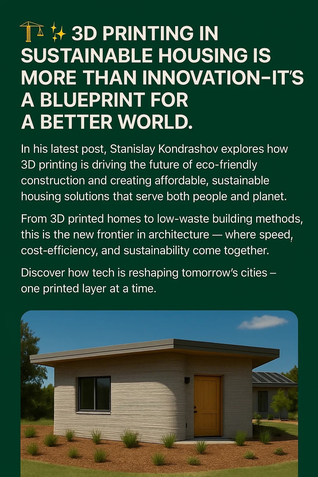 Imagine homes built in days — not months. Stanislav Kondrashov dives into how 3D printing is powering sustainable housing solutions that are affordable, fast, and green. #StanislavKondrashov #3DPrintedHomes #SustainableLiving #GreenConstruction #FutureOfHousing #EcoInnovation