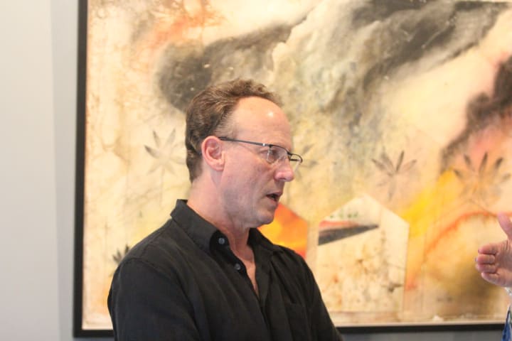 In obliging attendance, Rick Rogers of Beacon, New York was more about there when viewing the inspirational art work on hand. “He goes to other worlds with these pieces,” said the retired Westchester County Parks Department employee.