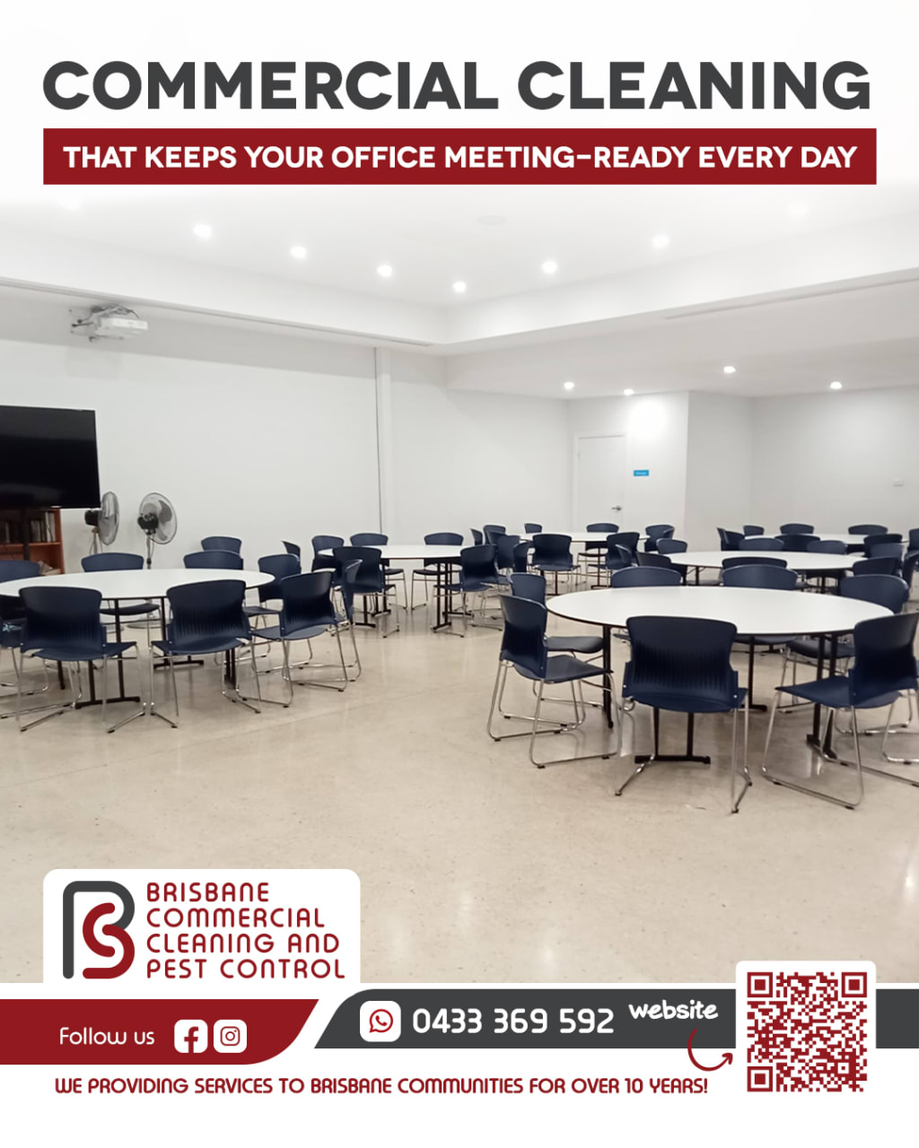 Brisbane Commercial Cleaning and Pest Control keeps your office spotless with expert Commercial Cleaning for desks, floors, kitchens, and common areas.