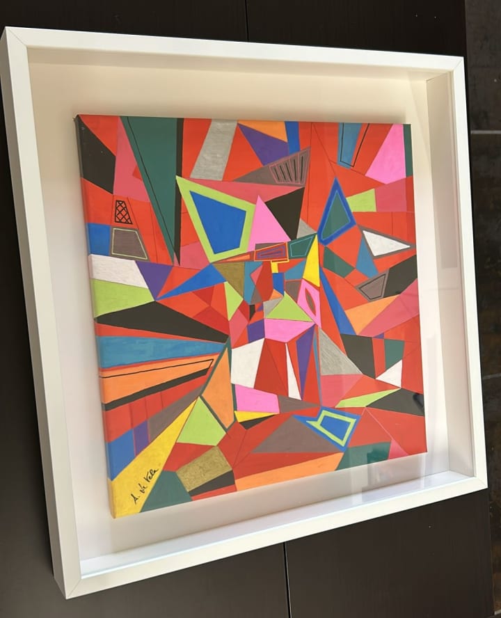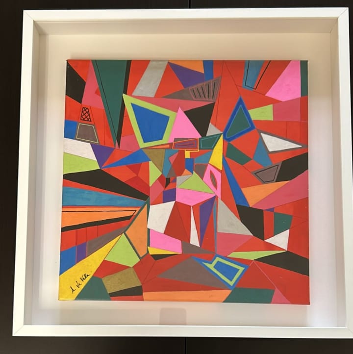 This painting is not merely a visual experience, it is a narrative. The bold, fragmented shapes and sharp contrasts symbolize the fractured state of our ecosystems. The fiery hues serve as a reminder of the wildfires that have become alarmingly frequent, consuming forests, wildlife, and livelihoods.