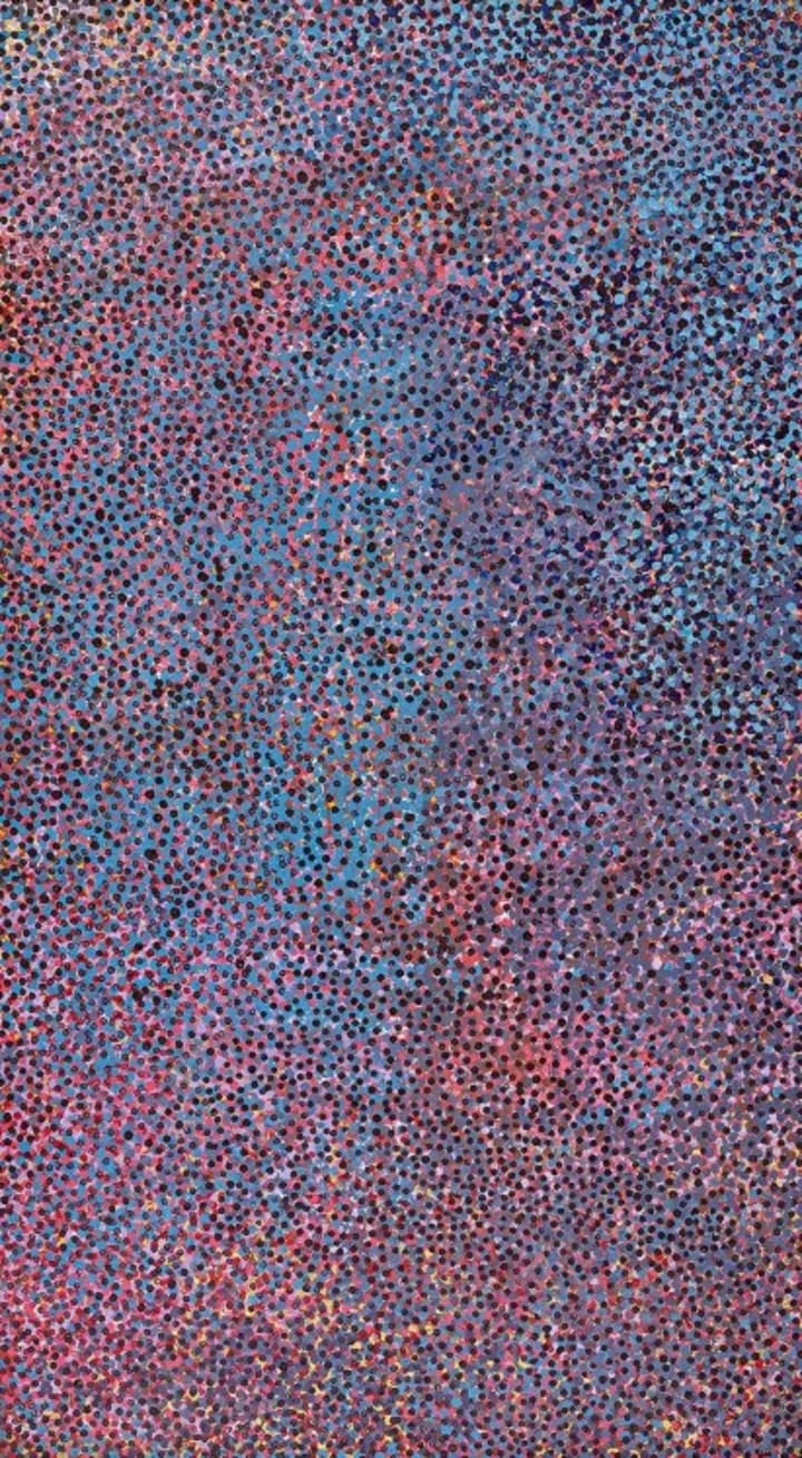 Kngwarreye’s art is deeply rooted in her intimate relationship with her land and culture. As a member of the Anmatyerre language group, she was a custodian of sacred knowledge, ceremonies, and Dreaming stories, ancestral narratives that encode spiritual, environmental, and historical knowledge. Her paintings reflect these stories, embodying a symbiotic relationship between the land, its people, and its spirits.