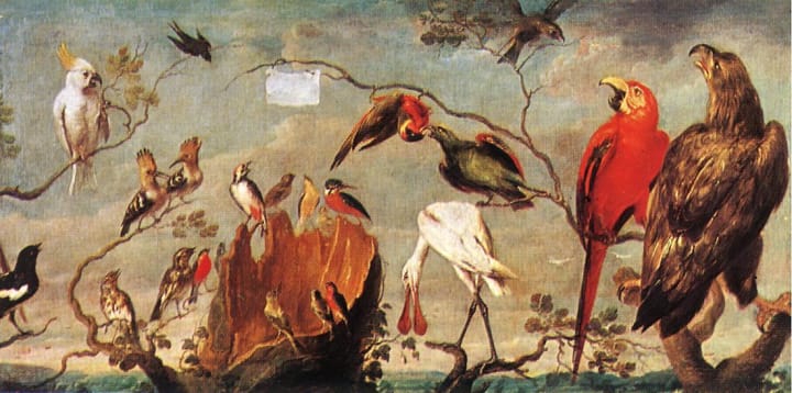 Flemish painter of animals, hunting scenes, market scenes, and still life Frans Snyders created this famous painting of various bird species as if coming together in song.