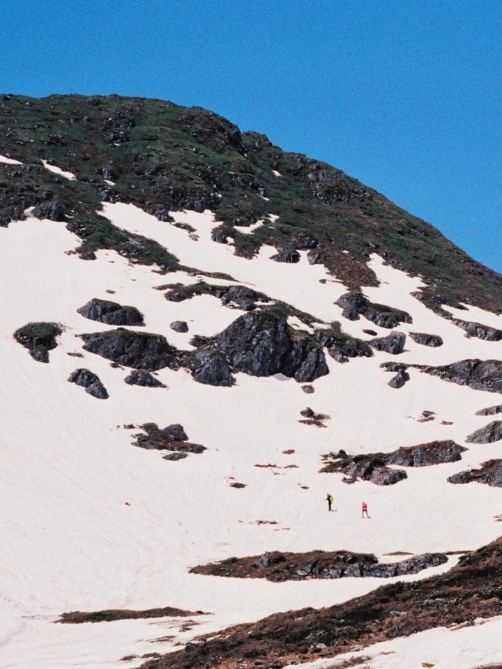 As we made our way up the mountain, we spoke less and less, each of us lost in our own thoughts, focusing on the rhythm of our steps. The forest began to thin out, giving way to a more rugged terrain. The lush green of the trees faded into the grey and brown of rocks and dirt, and the trail became narrower, hugging the side of the mountain with a sheer drop on one side. The higher we climbed, the more the vastness of the landscape began to press down on us.