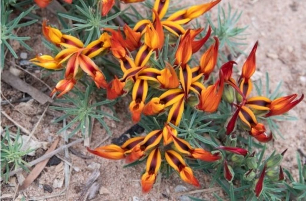 The Parrot's Beak flower, with its pendulous, tubular blossoms, earned its name due to the striking resemblance of its blooms to a parrot's beak in flight. The flowers exhibit a remarkable range of colors, transitioning from fiery reds and oranges to delicate yellows and purples, creating a mesmerizing display that seems almost surreal against the arid landscape.