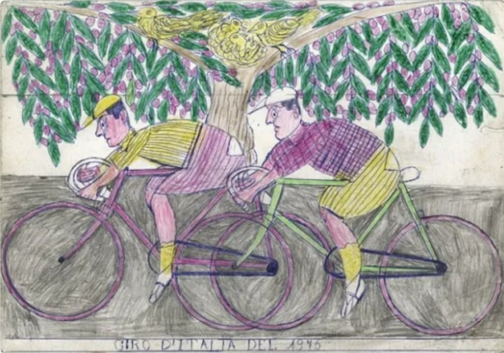 Abrignani’s art often juxtaposes themes of motion and stasis, reflecting his longing for the freedom he once enjoyed. His drawings, whether of trains cutting through the landscape, bicycles racing in the Giro d’Italia, or gondolas gliding through Venetian canals, carry an undercurrent of both nostalgia and hope.