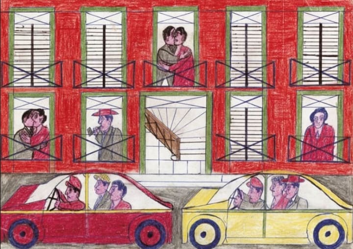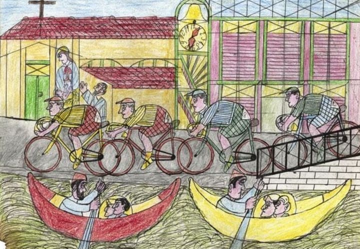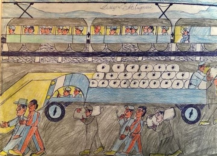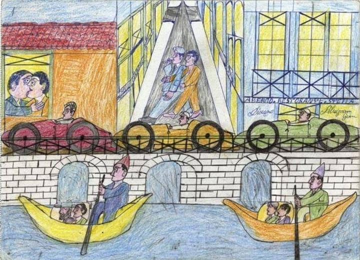His compositions, often featuring intricate designs and vivid depictions of travel, bicycles, gondolas, and trains, reflected a yearning for the freedom he had lost. These works were not just artistic expressions but windows into his soul, capturing the vibrant world of his imagination as a counterpoint to the bleakness of his reality.