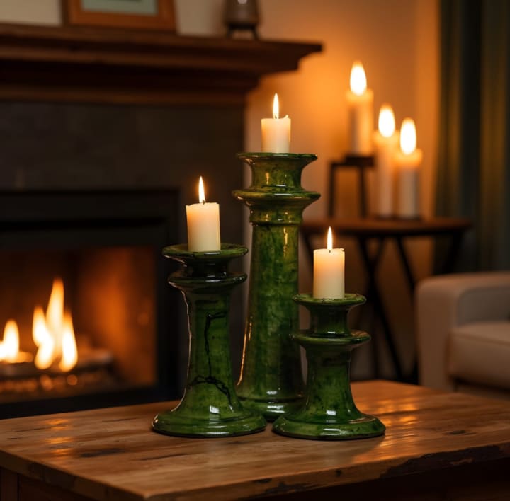 1. Tamegroute Pottery Green Candlestick Holders—Set of 3