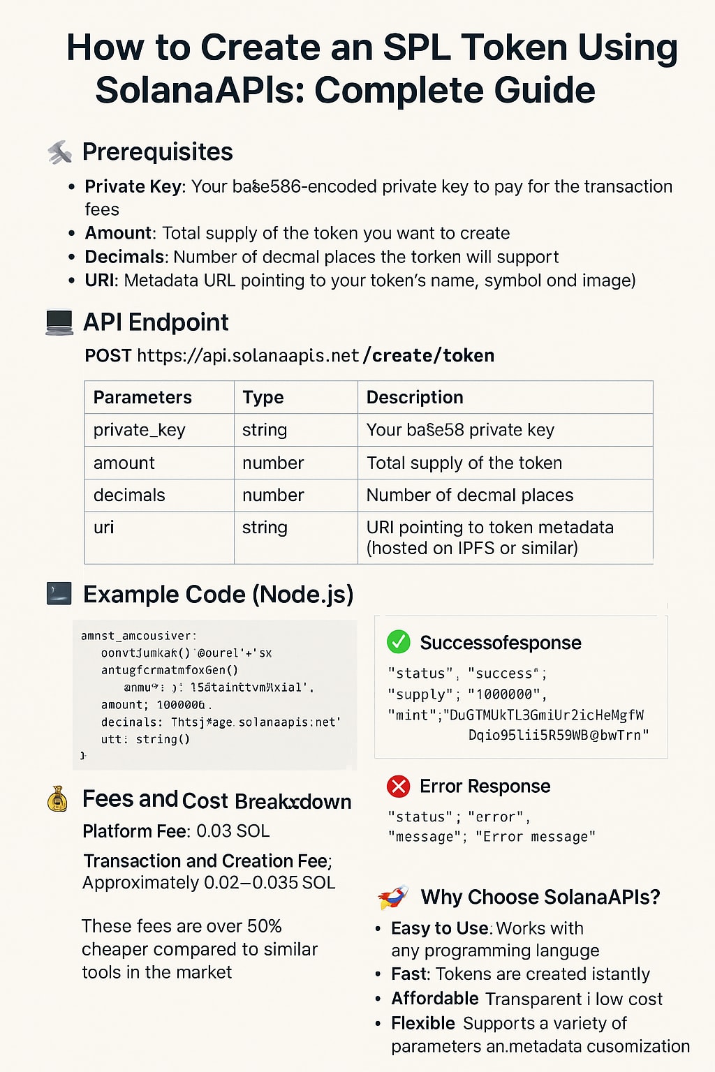How to Create an SPL Token Using SolanaAPIs: Complete Guide