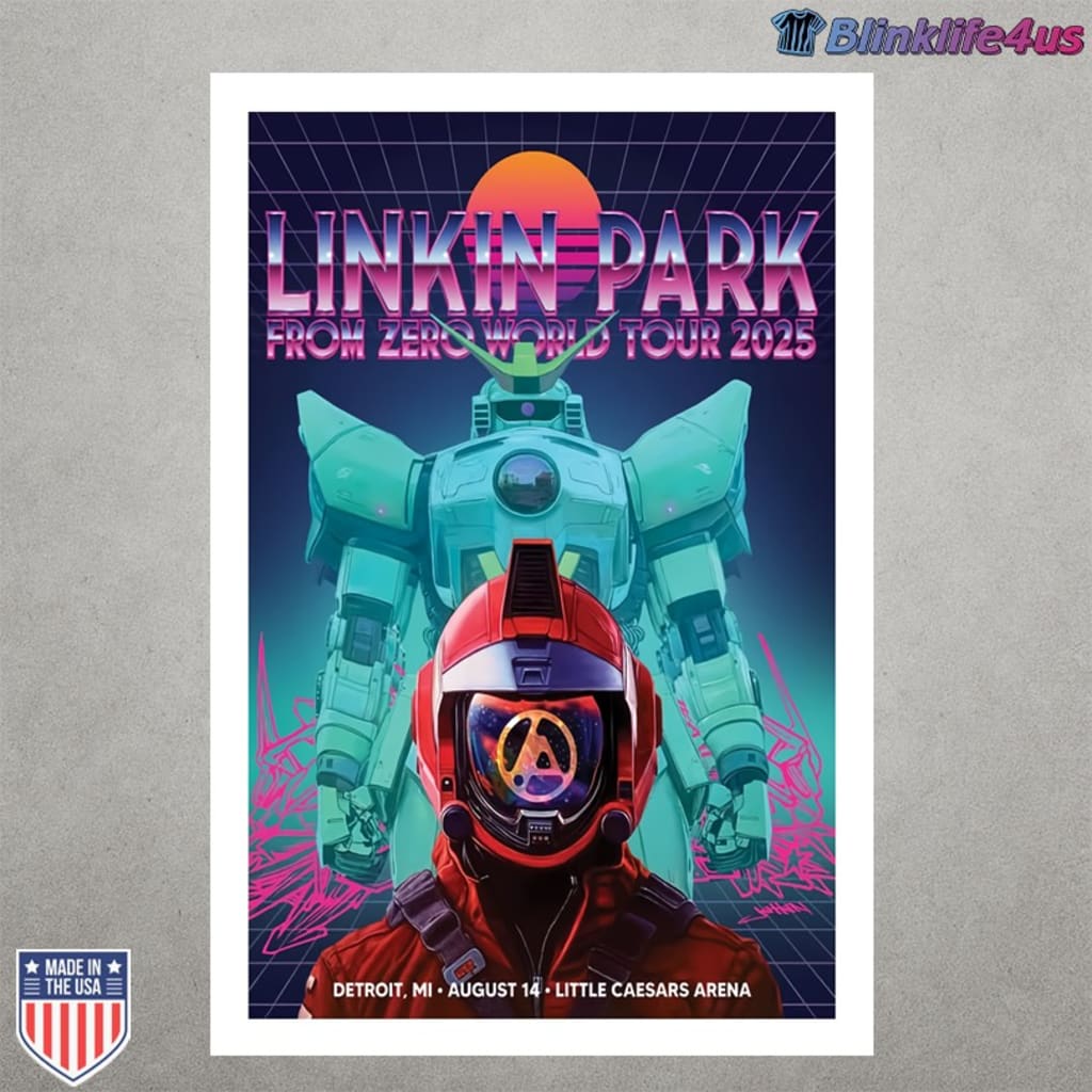 Linkin Park poster, Detroit 2025 concert art, From Zero World Tour 2025, Little Caesars Arena Linkin Park, retro synthwave poster, cyberpunk concert art, Linkin Park wall art, limited edition music poster, Linkin Park collectible Detroit, Linkin Park tour memorabilia.