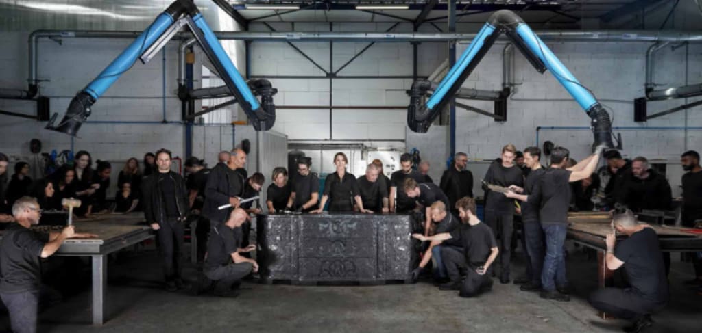 Since its inception, Mitry-Mory has become the heart of the work of relationship with Carpenters Workshop Gallery, both of which are founded by Loic Le Gaillard and Julien Lombrail. Carpenters Workshop Gallery supports the work at Mitry-Mory and provides the artisans with a prominent platform to showcase their work to a global audience.