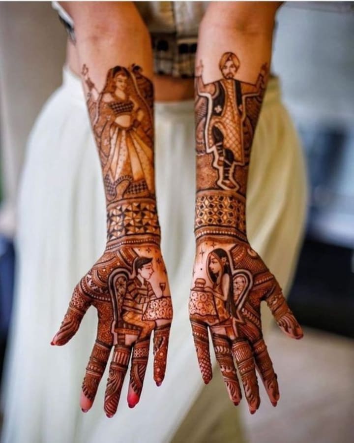 Personalized Mehndi — Include elements like wedding dates, initials, your love story, or even miniature portraits.