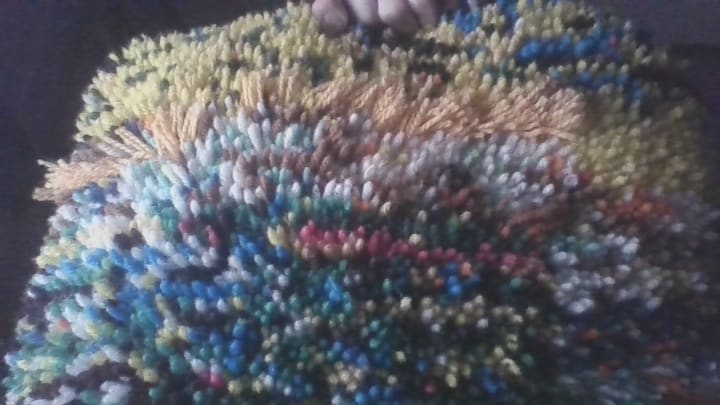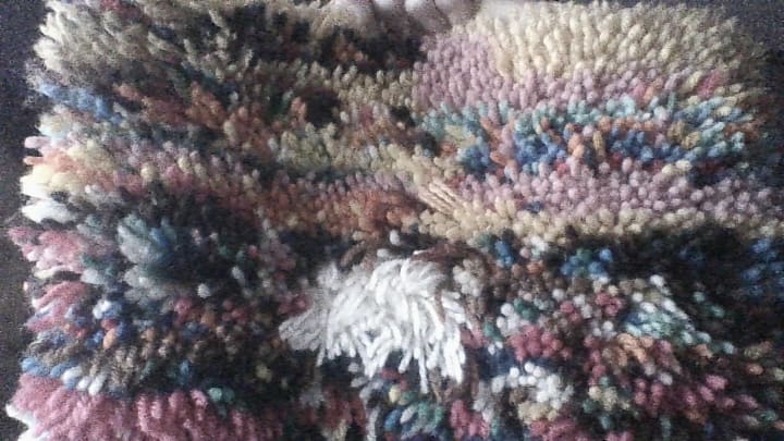 Here are some of my latch hook creations over time. They are using various colors of yarn that kind of show my emotions while making them. Most of my projects in this medium are abstract.