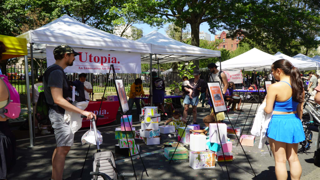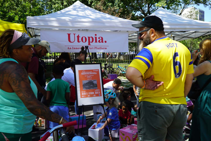 The Utopia. Pop-Up Exhibition at NYC Summer Streets is a shining example of how art can transform urban spaces, bring people together, and encourage engagement and participation from the community. With over a thousand visitors passing by throughout the day, the event proved that art can indeed be for all.