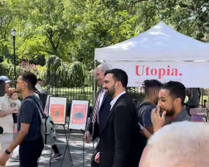 Among the notable visitors was Zohran Kwame Mamdani, candidate for Mayor of New York City. Mamdani took time from his campaign schedule to engage directly with the public, participating in the group painting and connecting with attendees.