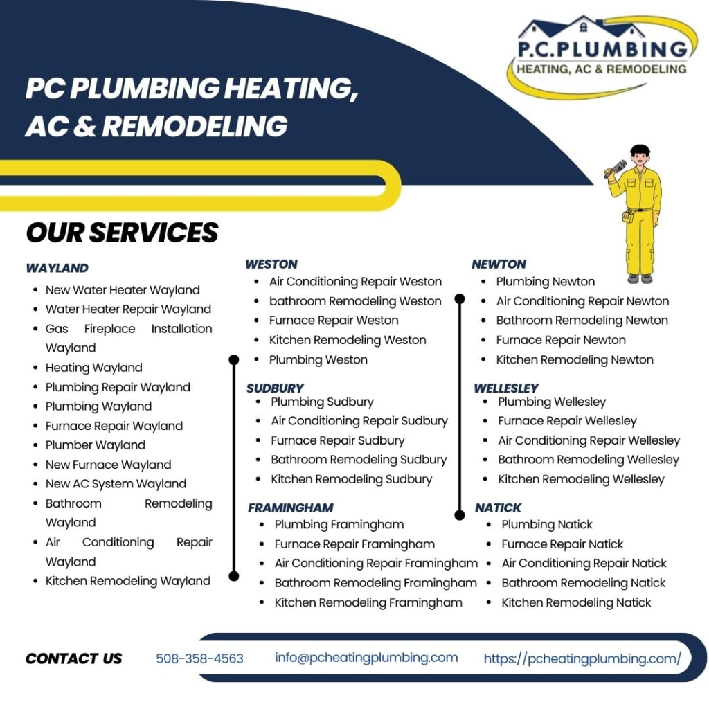PC Plumbing Heating, AC & Remodeling is your go-to for comprehensive home services in Sudbury and Weston. Our skilled professionals handle everything from essential. For More Information Visit Our Website - https://pcheatingplumbing.com/