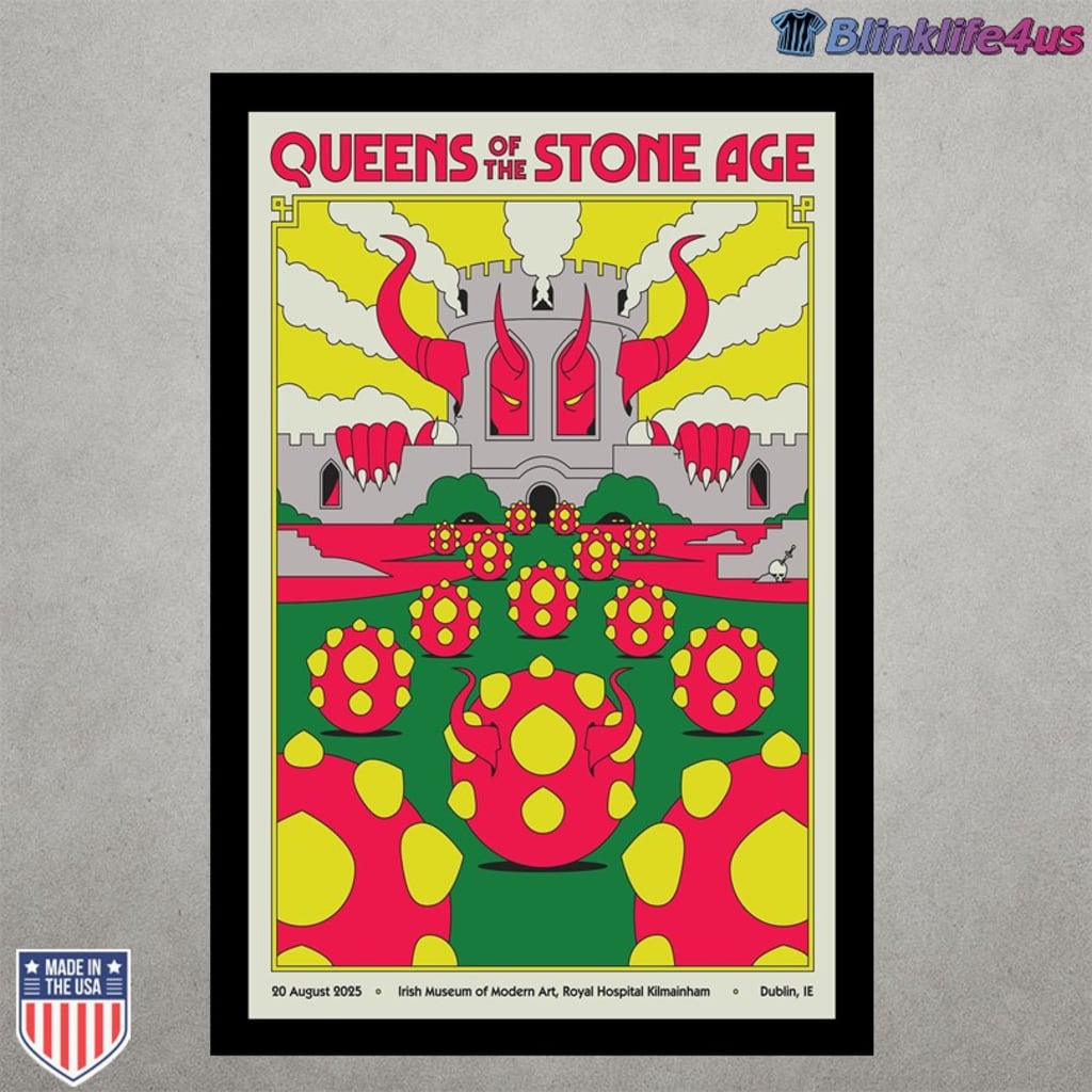 On August 20, 2025, the legendary rock band Queens of the Stone Age brought their thunderous sound to Dublin, Ireland, performing at the historic Irish Museum of Modern Art, Royal Hospital Kilmainham. To commemorate this unforgettable concert, a stunning Queens of the Stone Age Dublin 2025 Poster was created—an artwork that fuses psychedelic imagination with bold graphic design, making it a collectible masterpiece for both fans and art lovers.