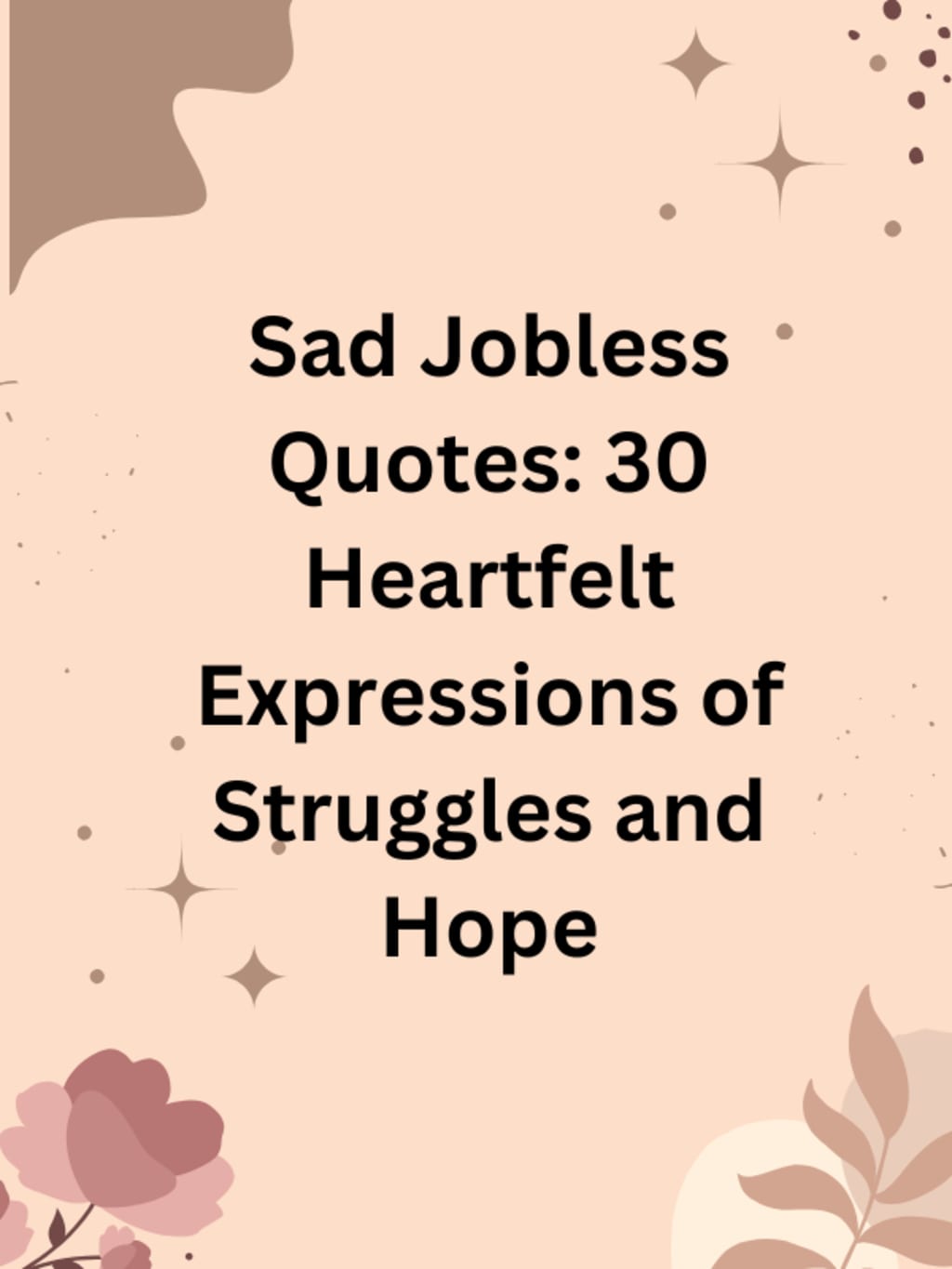 Sad jobless quotes resonate deeply with individuals navigating the uncertain waters of unemployment. Losing a job often brings feelings of despair, frustration, and self-doubt. However, these moments also open doors for reflection, growth, and new beginnings. Here, we explore 30 poignant quotes that capture the sadness and the silver linings of being jobless.