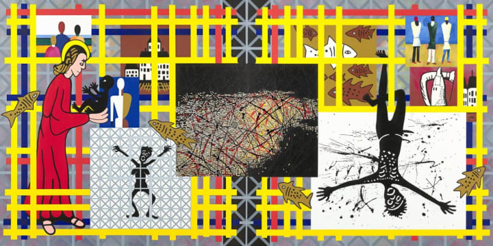 Bennett’s work is renowned for its complexity and layered symbolism. Drawing on a diverse array of influences, including Western art history, Aboriginal iconography, and contemporary pop culture, his pieces often juxtapose conflicting narratives. Through this, Bennett challenged the dominant Eurocentric perspectives of art and history.