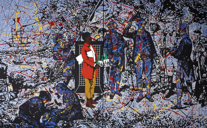 Bennett’s exploration of identity went beyond his cultural heritage. His works also delved into the psychological impact of racism and the universal human desire for recognition and respect. In Self Portrait (But I Always Wanted to be One of the Good Guys), he presents a fragmented, multi-layered image of himself, reflecting the internal conflicts of living in a racially divided society.