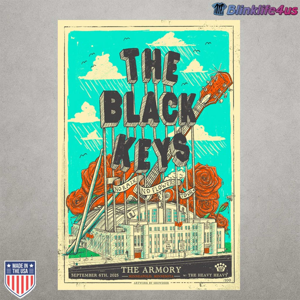 Concert posters often do more than advertise an event—they capture the energy, personality, and artistic vision of the band itself. The Black Keys September 6, 2025 Minneapolis Poster designed for their “No Rain, No Flowers Tour” is a stunning example of this tradition. Created for their live show at The Armory in Minneapolis, Minnesota, this limited-edition artwork combines symbolism, bold design choices, and cultural resonance into one unforgettable piece.