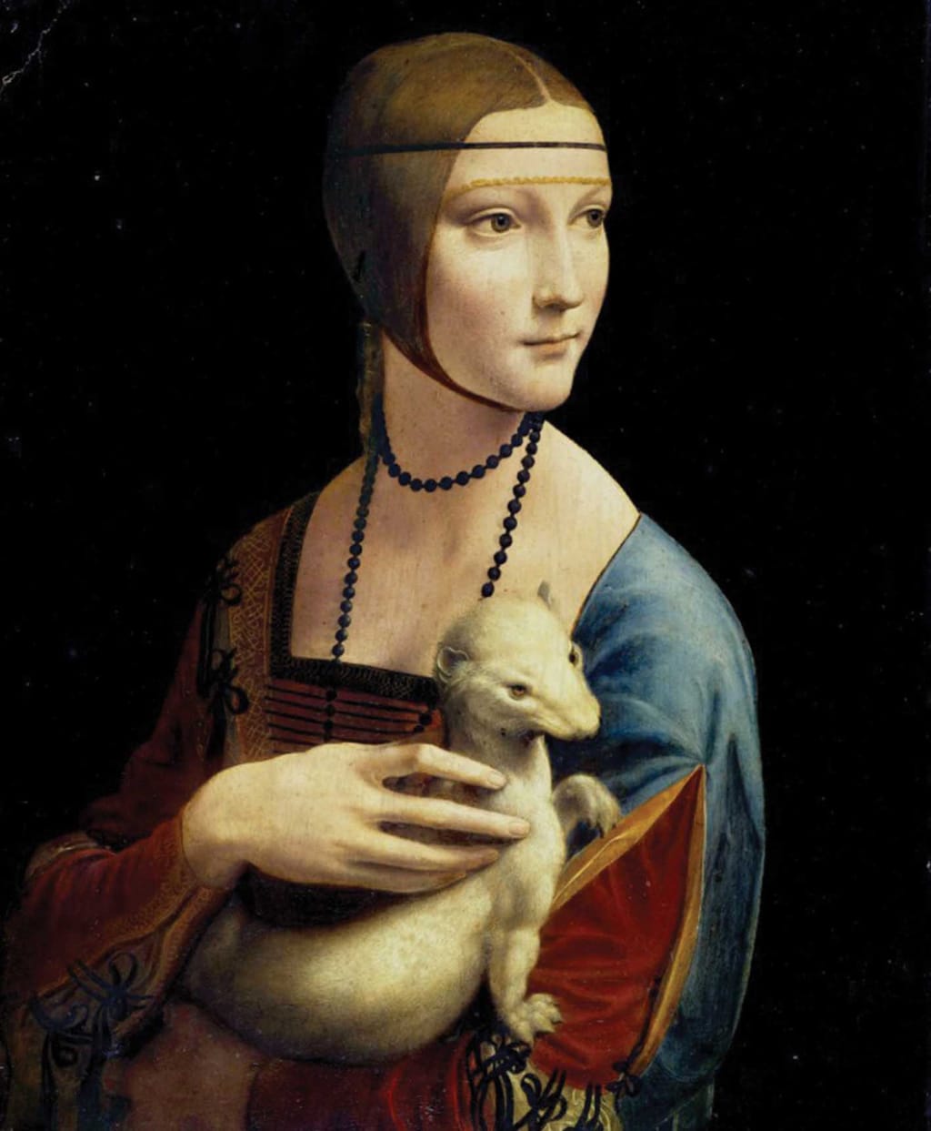 The Duke of Milan was also the person who saw the beauty of Cecilia Gallerani (1473-1536) and was captivated by her talent. As the daughter of an educated middle-class family, with a diplomat father and a law professor mother, Cecilia was skilled in poetry, public speaking, Latin writing, and became the lover of the Duke at the age of 16.