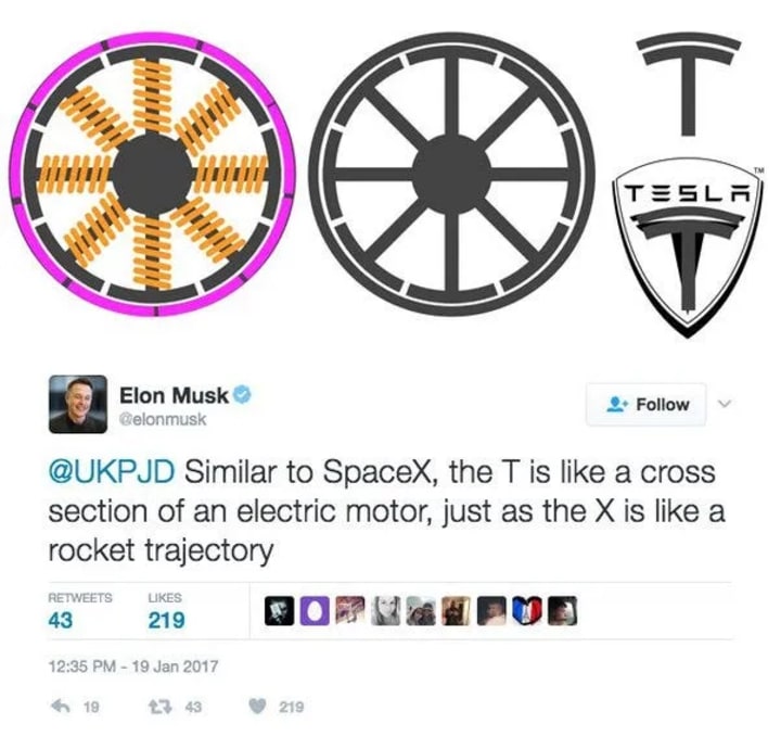 Let’s explore the evolution of the Tesla logo and unveil its true meaning. Crafted by the RO Studio, the logo initially resided within a shield but later evolved to the simplified “T”. According to a recent tweet from Tesla CEO Elon Musk, the seemingly straightforward “T” serves as a depiction of the brand’s products. Musk elaborated that the vertical line represents one of the poles extending from a motor’s rotor, while the horizontal line signifies a section of the stator. This insight sheds light on the meticulous thought process behind company logo design.