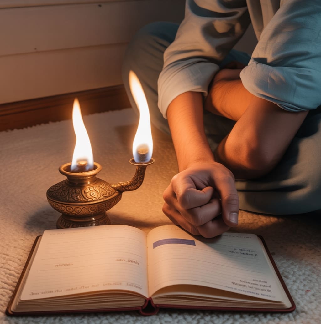 Arif sat down on the floor, diary in lap, lamp by his side.