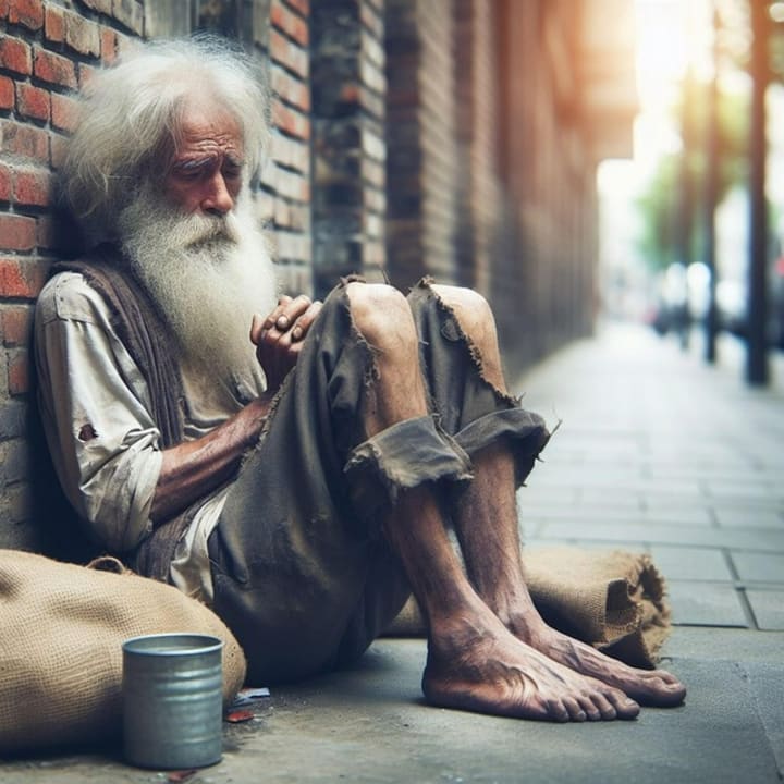 One of the greatest tragedies of the old beggar's life is invisibility. As people rush past in cars or walk by with eyes fixed on their phones, the beggar becomes part of the scenery—just another object on the sidewalk. Some offer a coin or two; others pretend not to see.