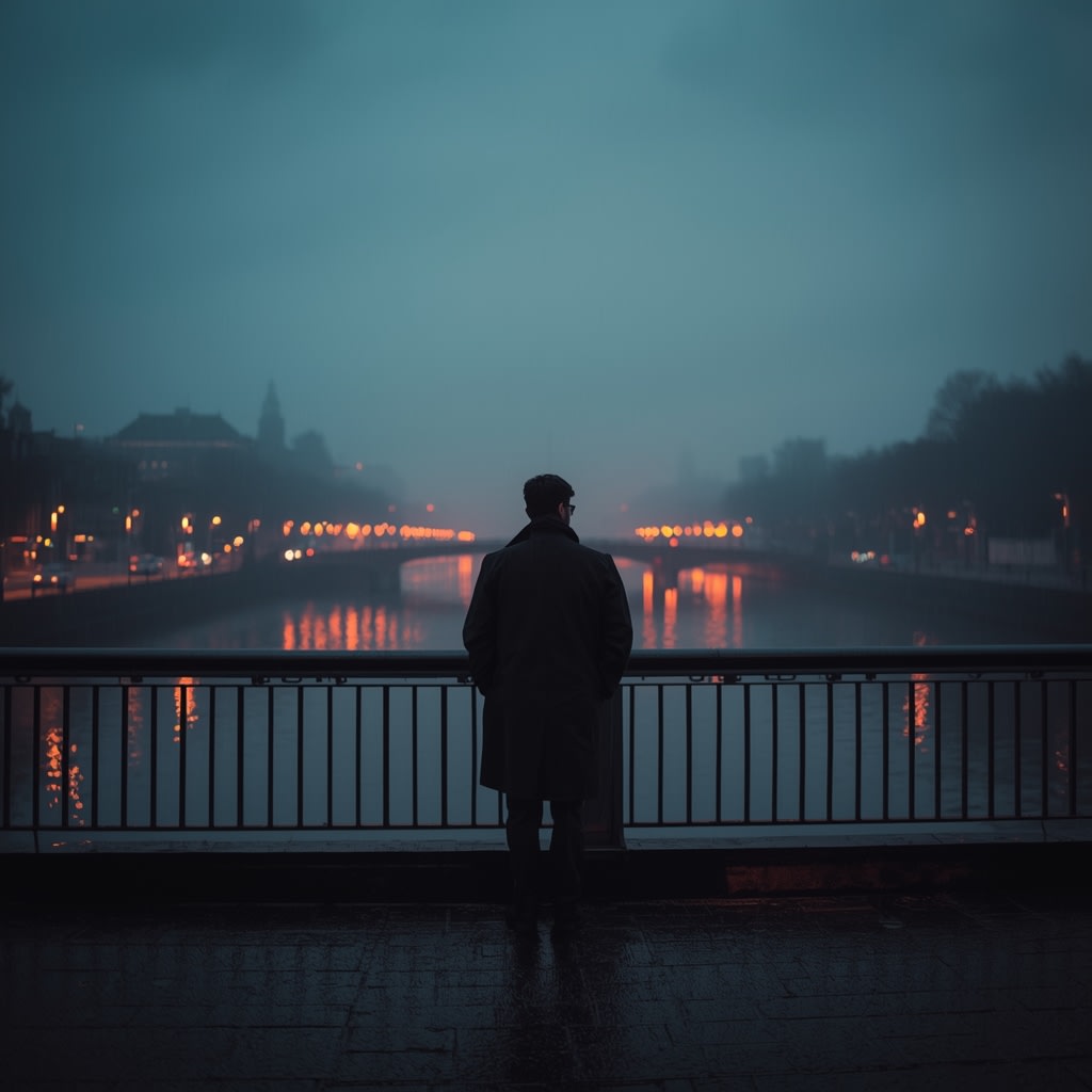 And that’s where he was — standing alone by the Oberbaum Bridge, the river below moving slow and heavy, like time itself. No umbrella, no rush. Just waiting.
