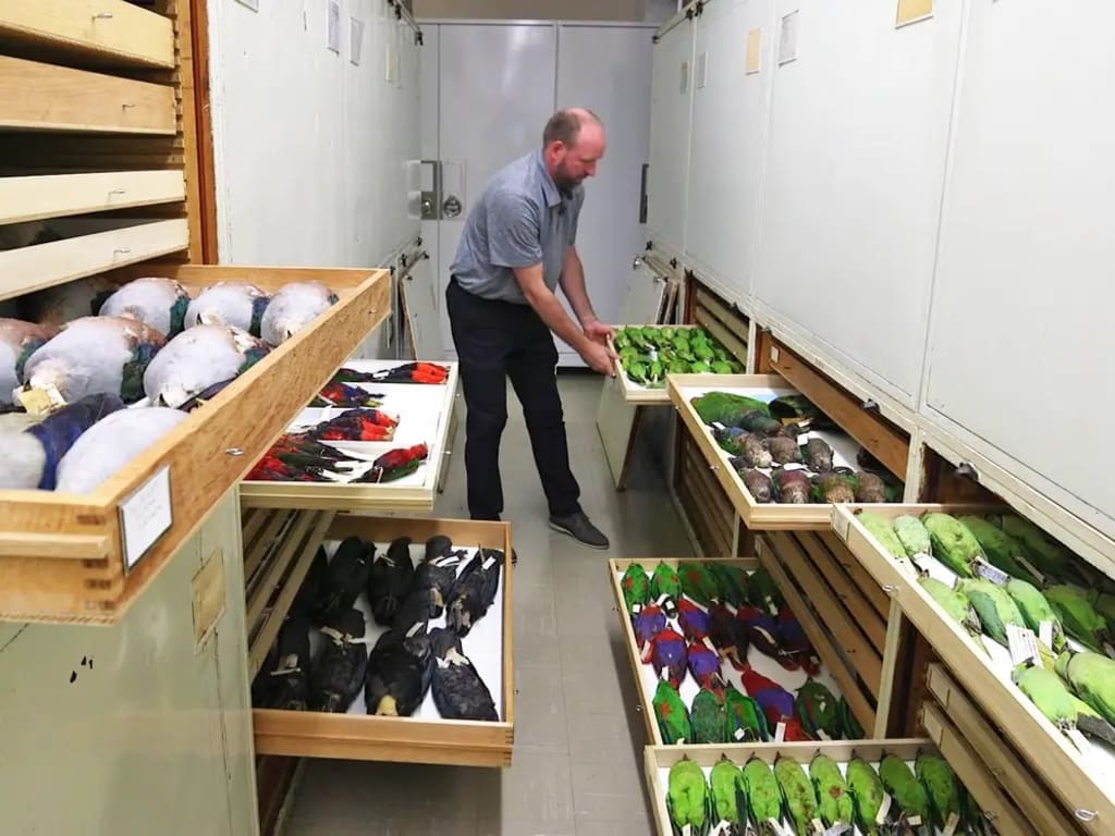 Collection. Once acquired, the bird is meticulously prepared by specialists who ensure that the skin is preserved and maintained to the highest standards. This process is essential as the specimens are used for research purposes, such as identifying birds that have been killed by airplanes or studying evolutionary changes in duck bills.