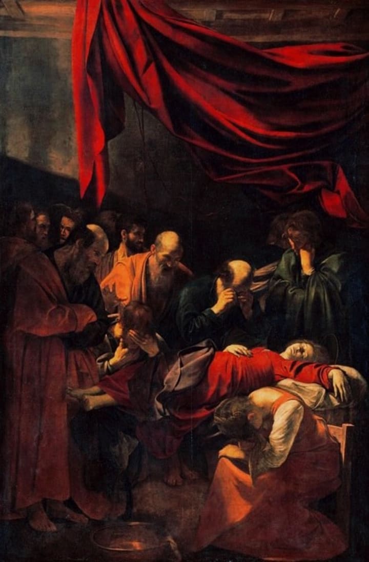 Ofili’s exploration of the sacred and the profane finds an echo in Caravaggio’s La Vergine Morta (The Death of the Virgin), painted in 1606. Like Ofili’s Madonna, Caravaggio’s Virgin Mary defied traditional depictions. She was not an idealized, otherworldly figure ascending to heaven but a lifeless corpse, modeled after a drowned prostitute. Her swollen abdomen and bare feet emphasized her humanity, shocking audiences accustomed to the sanitized divinity of Renaissance art.